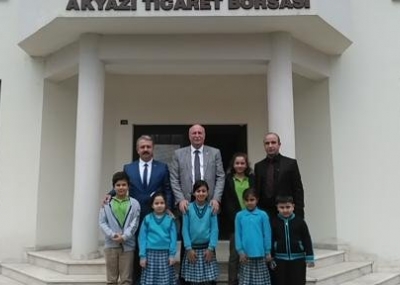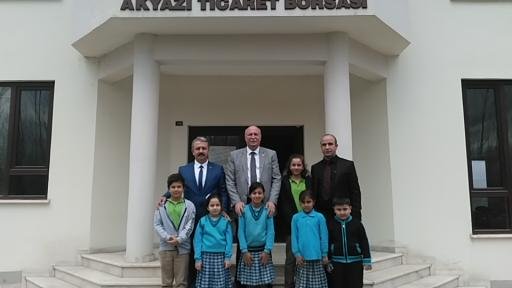 Akyazı İlköğretim Okulu Müdürü Necati KOÇAK ve okul aile birliği başkan ve üyeleri, Kuzuluk İlköğretim Okulu müdürü Mehmet Salih ŞAHİN, Kuzuluk Dr. Enver Ören Ortaokulu Müdürü Sinan GÜREL ve okul öğrencileri Akyazı Ticaret Borsası Başkanı Ali Şener BAYRAKTAR’ı makamında ziyaret ederek, okullarının öğrencilerine Ticaret Borsası tarafından yapılan okul kiyafeti, mont, çanta ve eşofman yardımlarından dolayı teşekkür ettiler.